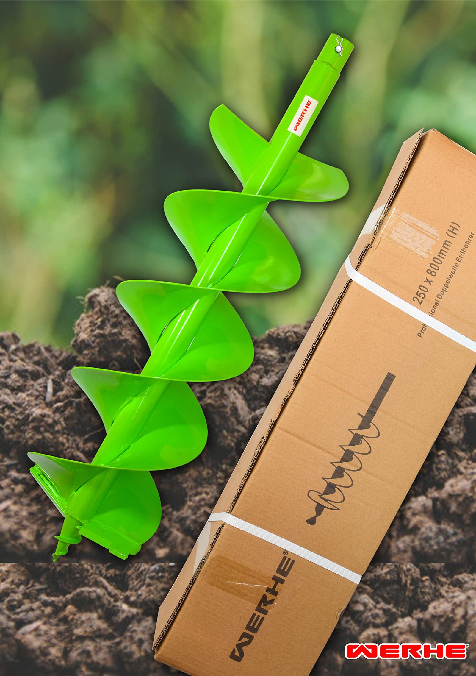 WERHE® Profi Bohrer Starker Stahl, Erdbohrer für bohrmaschine 250 mm Doppel-Welle extrem robust mit SDS Max Adapter – Pfahlbohrer Brunnenbohrer präzise Bohrspitze.