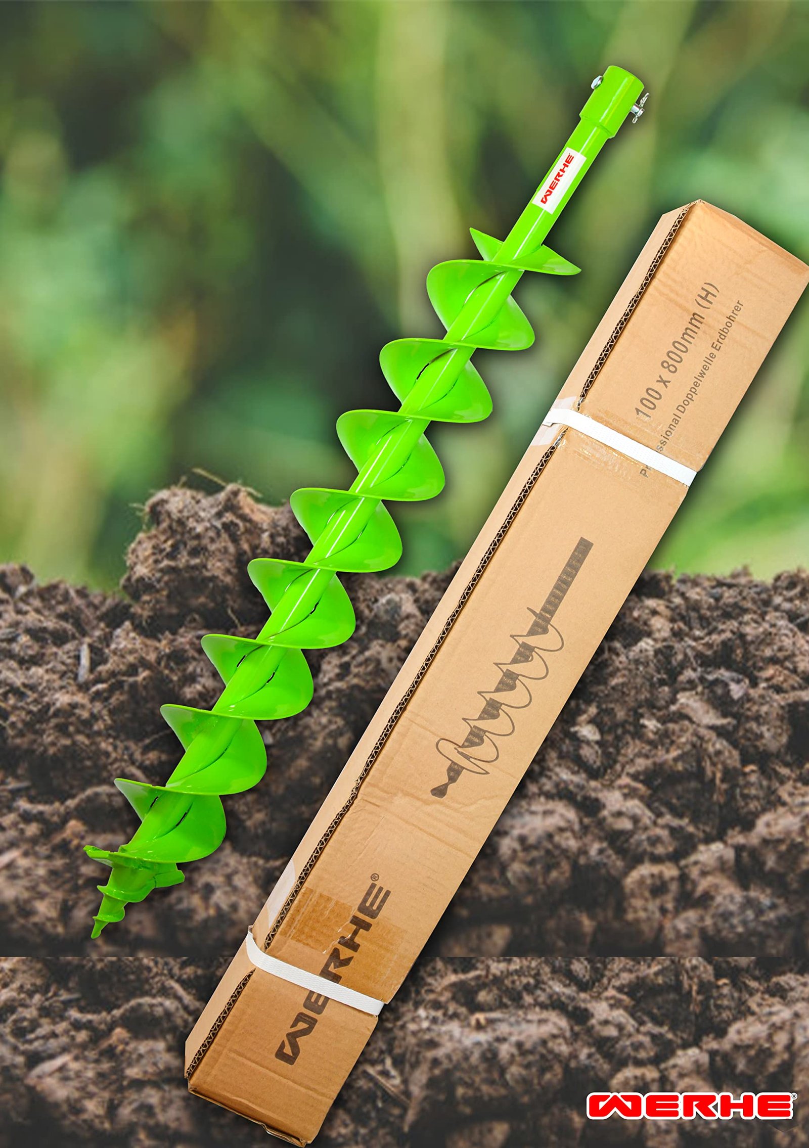 WERHE® Profi Bohrer VollStahl, Erdbohrer für bohrmaschine 100 mm Doppel-Welle extrem robust mit SDS Plus Adapter – Pfahlbohrer Brunnenbohrer präzise Bohrspitze.