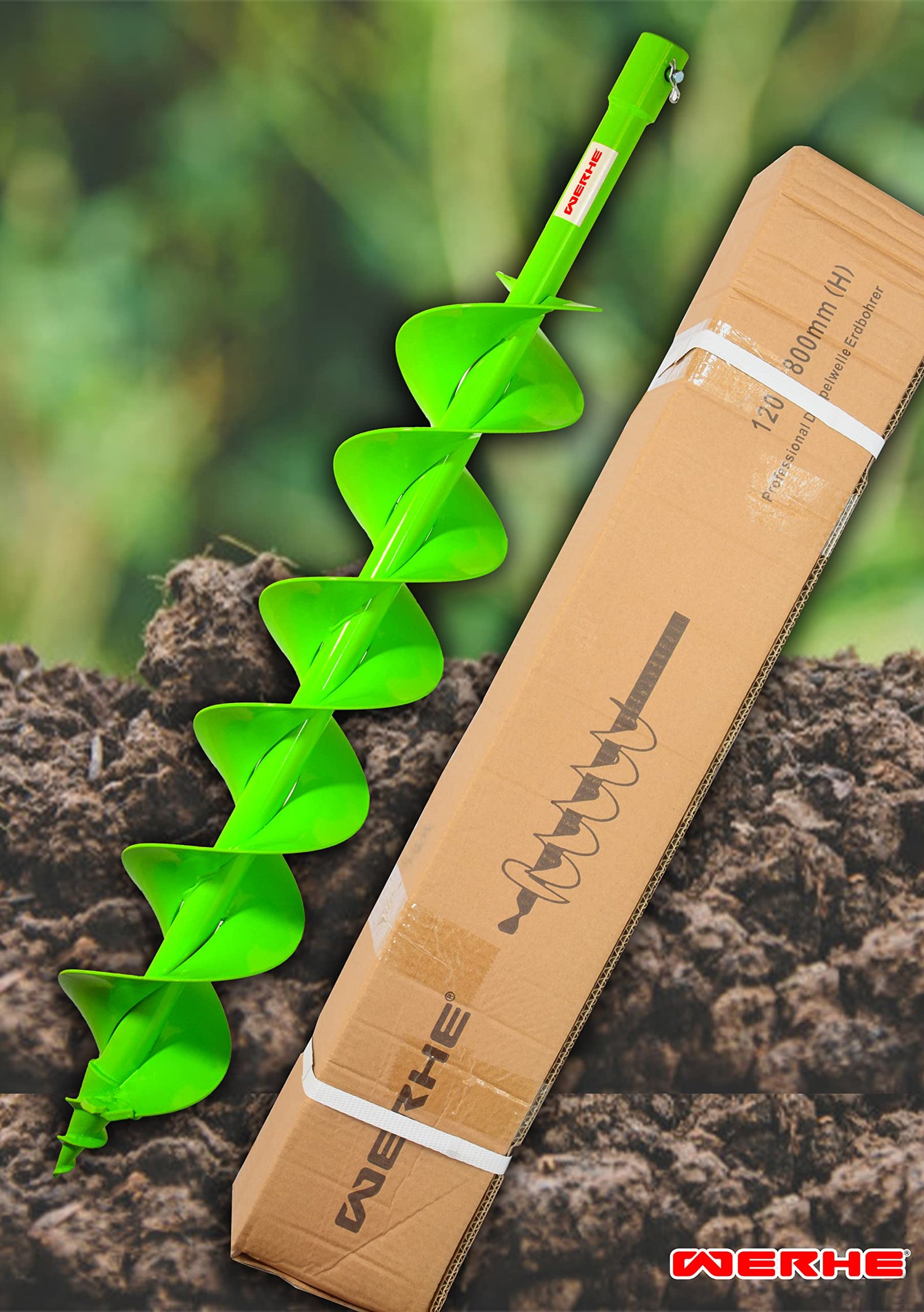 WERHE® Profi Bohrer VollStahl, Erdbohrer für bohrmaschine 120 mm Doppel-Welle extrem robust – Pfahlbohrer Brunnenbohrer präzise Bohrspitze.
